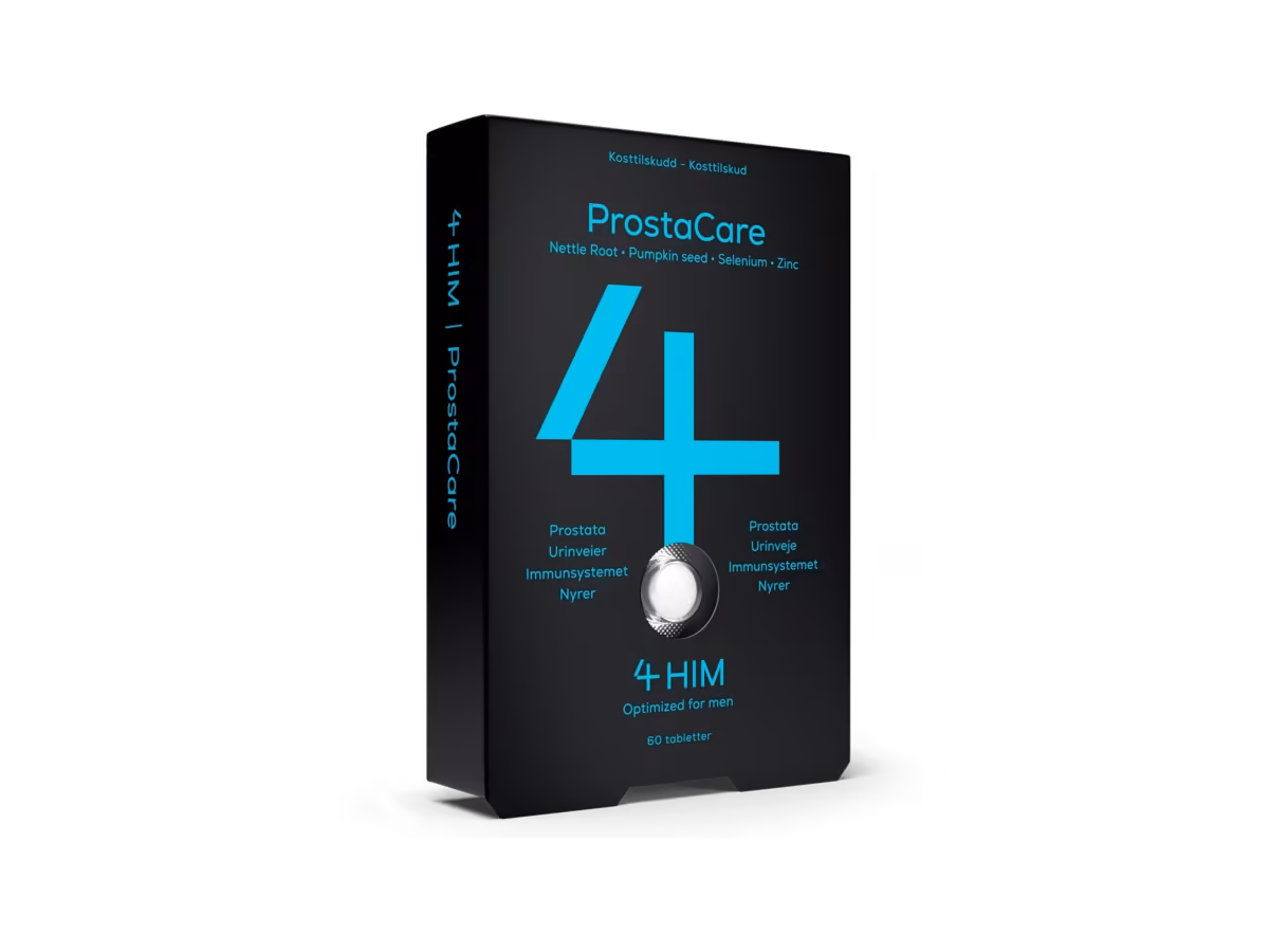 4HIM ProstaCare är ett praktiskt kosttillskott för män med växtextrakt från pumpafrön, brännässla och granatäpple, kombinerat med mineralerna zink och selen.