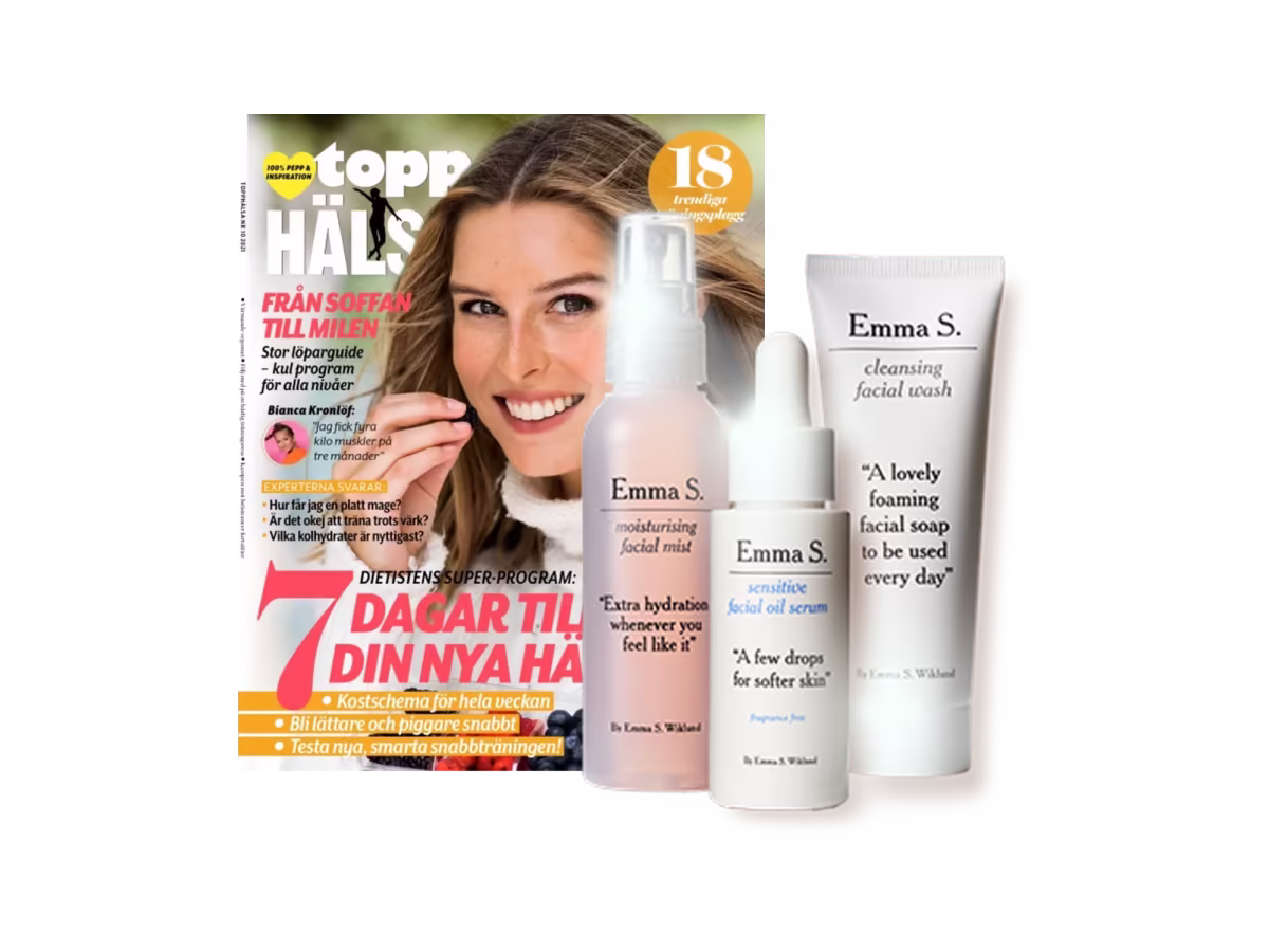 Just nu kan du beställa 5 nr. av ToppHälsa och lyxig hudvård från Emma S för endast 199 kr + porto och expedition.